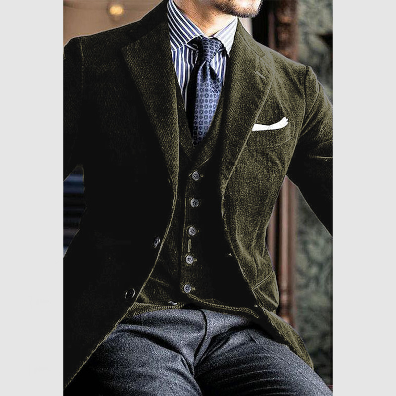 Men's Elegant Lapel Three Button Corduroy Blazer ( NEW )