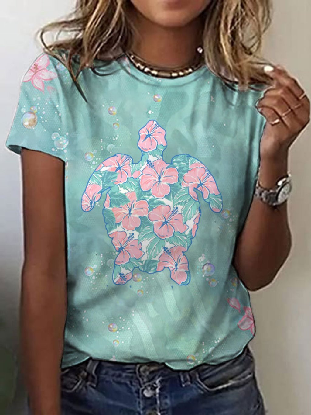 Women's Hawaii Hibiscus Sea Turtle Print T-Shirt